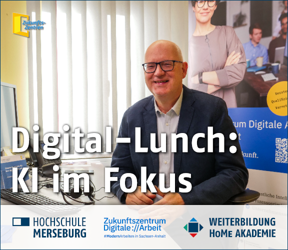 Harald Schwarz (Coach KI und immersives Lernen der Hochschule Merseburg) informiert beim Digital-Lunch zu Anwendungsmöglichkeiten, aktuellen Implementierungen, Updates sowie Trendausblicken und freut sich auf Fragen und gegenseitigen Austausch.